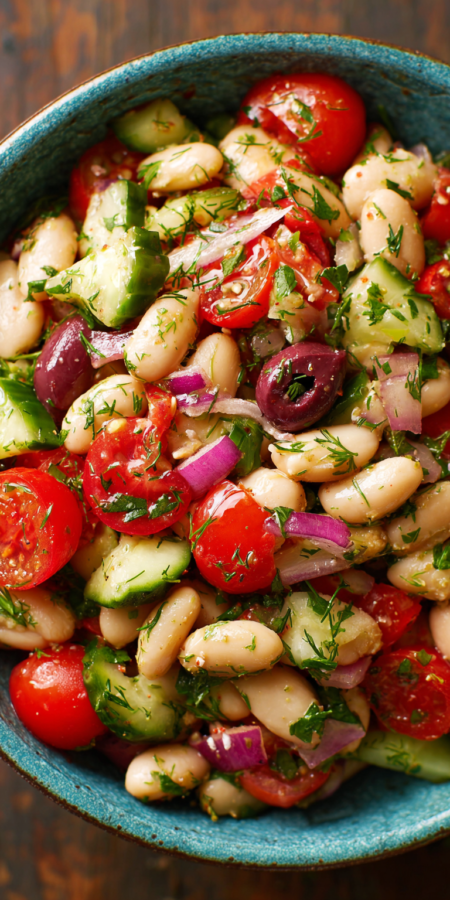 I published this recipe a few years ago after a frantic week where cooking felt impossible. I was staring into my pantry, willing dinner to appear, and my eyes landed on a lonely can of cannellini beans. That’s how this 10 Minute Mediterranean White Bean Salad was born. It’s perfect for those nights you need a quick dump-and-go dinner but want something fresh and light.