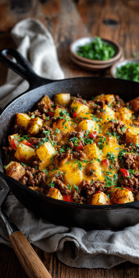 I was cleaning out my freezer last month when I found a forgotten package of ground beef and some potatoes starting to sprout in the pantry. With a busy week ahead and zero energy for complicated cooking, I threw together what would become our new favorite weeknight dinner. The scent of savory beef and roasting potatoes filled my kitchen, and when my family asked for seconds, I knew this dish was something special. If you’re looking for more crowd-pleasing desserts to follow up this hearty meal, you should definitely try our decadent strawberry chocolate cake.