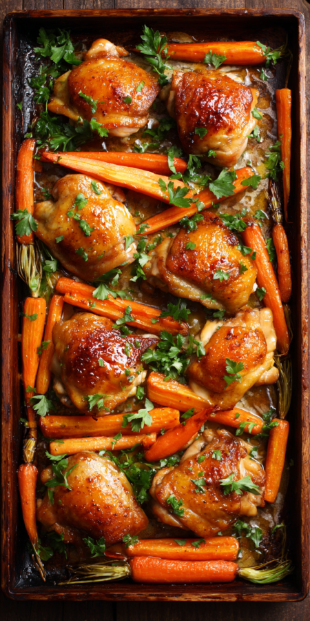 We’re talking juicy chicken, caramelized carrots, and a sticky-sweet-garlicky sauce that you will want to drink with a spoon. And the best part? It all happens on one sheet pan. Yes, you heard me! One pan for glory, my friend.