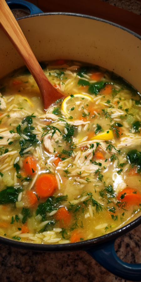 Comforting Lemon Chicken Orzo Spring Soup you can make today