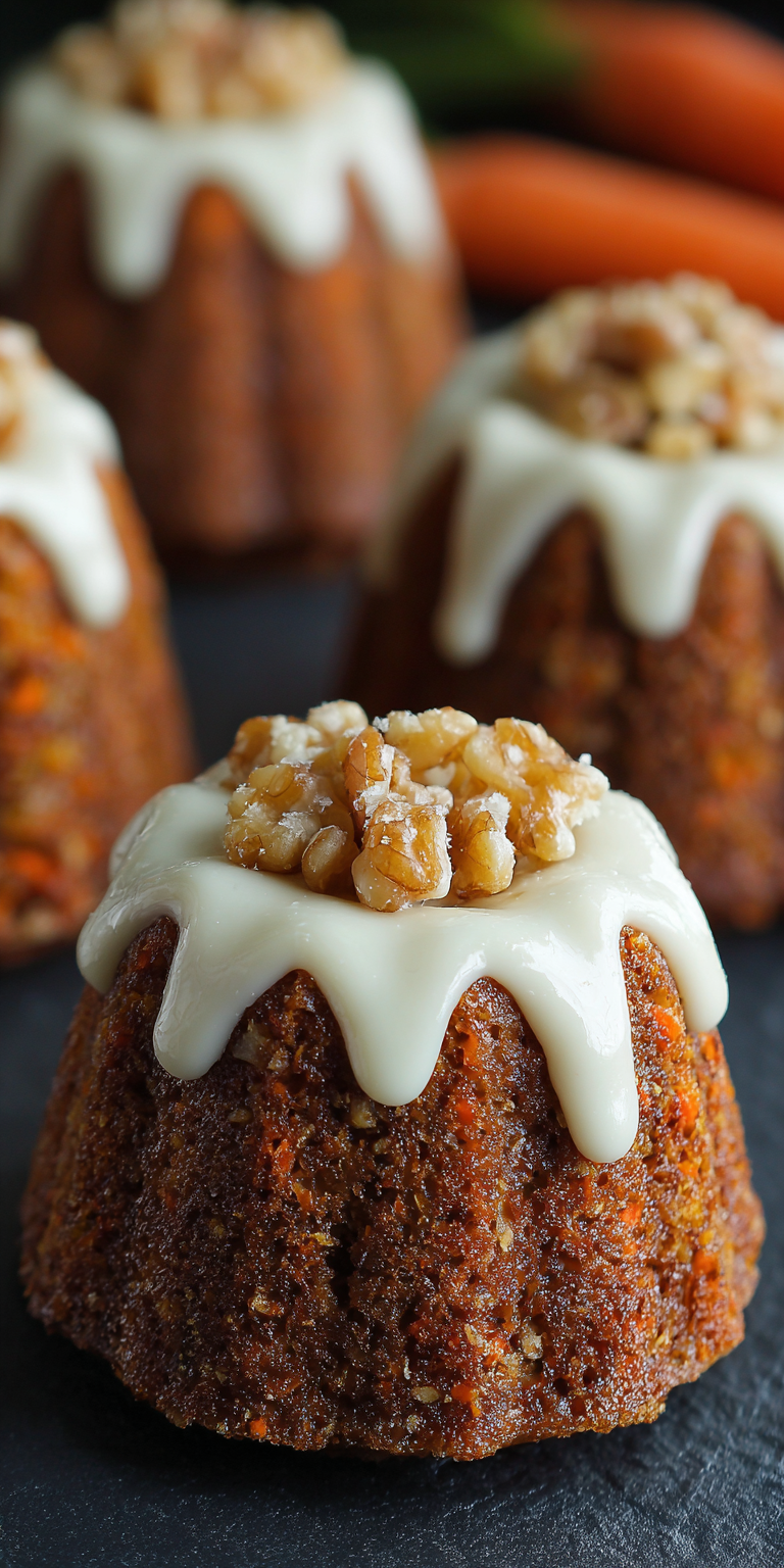 - Drizzle the frosting over your cooled mini cakes. You can add a sprinkle of extra grated carrot or cinnamon on top for a pretty finish.
