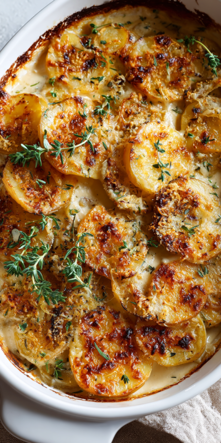 Swap half the potatoes for thinly sliced celery root. It adds an incredible, subtle earthy note. For a smoky twist, add two chopped chipotle peppers in adobo to the sauce—it gives a kick similar to our Cajun-spiced potato soup. You can also layer in fresh spinach or sautéed mushrooms between the potato layers.